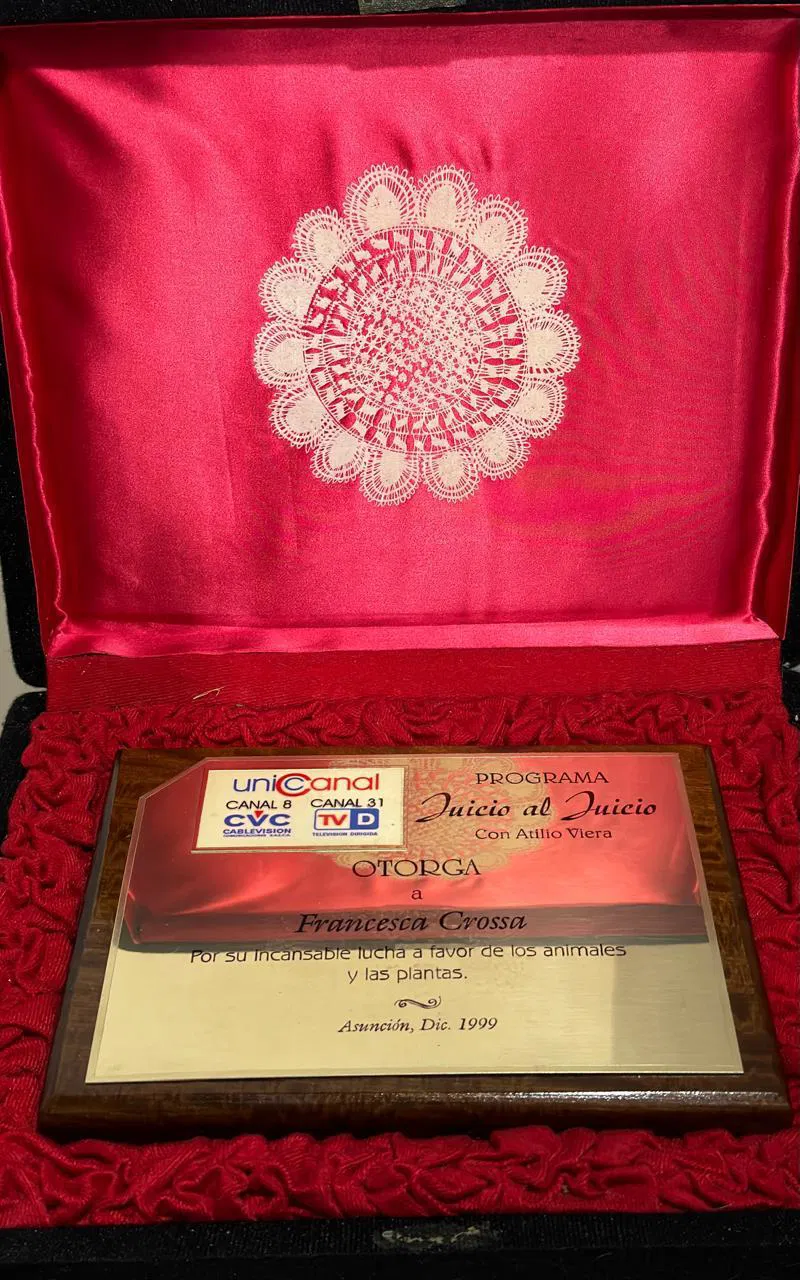 Presidenta Sociedad protectora de animales, Distincion que le fuera entregada hoy por el Senado.